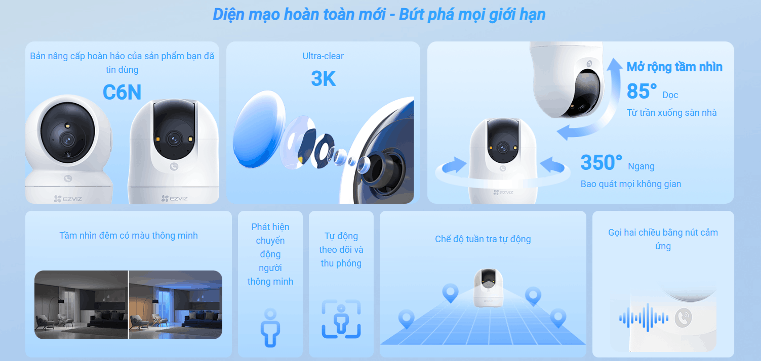 Camera Wifi EZVIZ C6N G1 3K Camera Quay Quét Trong Nhà Thế Hệ Mới